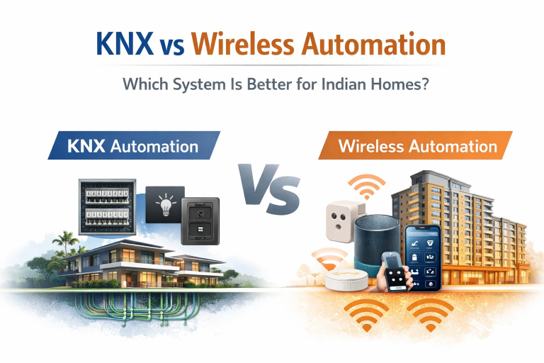 A practical comparison of KNX vs wireless automation systems to help Indian homeowners choose the right smart home architecture.